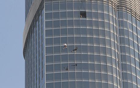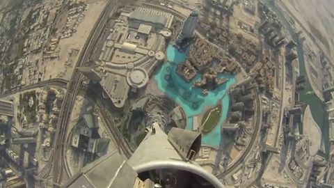 Peering over the edge of the 2717 foot Burj Khalifa skyscraper in Dubai are the scouts for Mission: Impossible 4, Ghost Protocol. This is their view. (Thanks, Dylan!)
